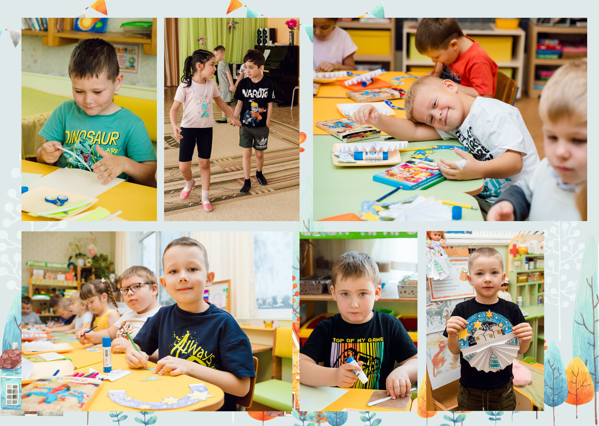 - 5 разворотов, куда вы сами выбираете фотографии. Возможно размещение 4-6 фото на один разворот.