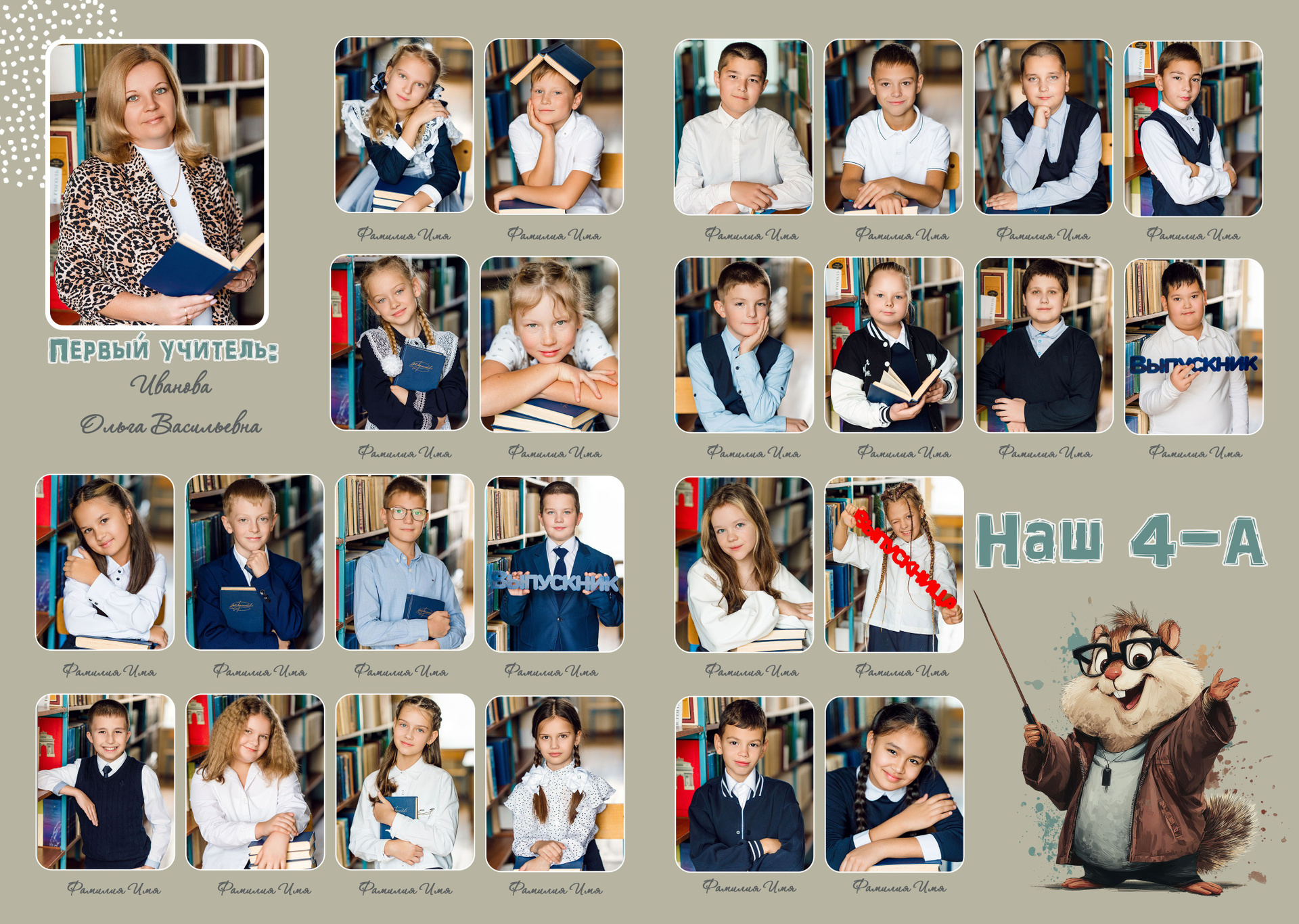 - Внутри — виньетка ученики + учитель