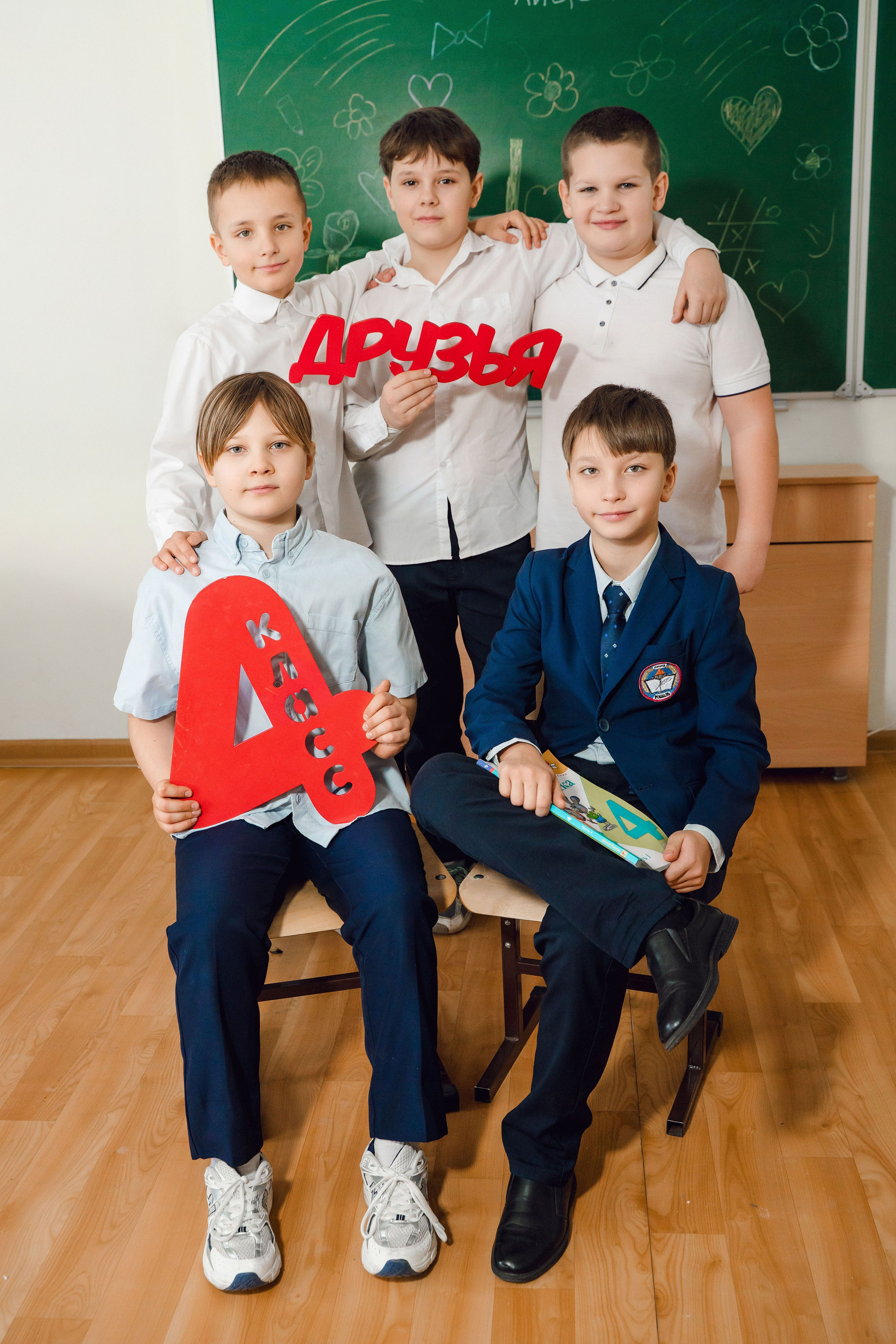 - Один общий разворот с подписанными мини-портретами учеников и учителя